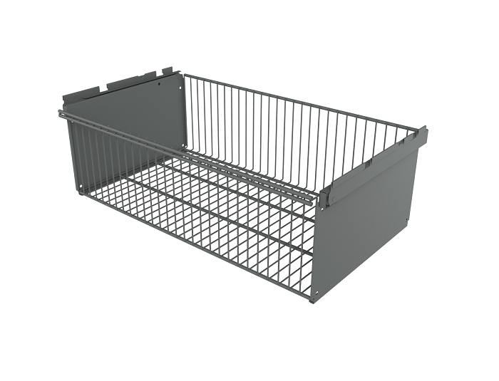 Корзина выдвижная Титан GS предназначена для установки на гардеробную систему. Изготовлена из проволоки, такой же как и сетчатые полки Титан GS. Учитывая крупноячеистую структуру, выдвижные корзины являются отличным вариантом для хранения одежды, поскольку обеспечивается отличная вентиляция вещей. Корзина выдерживает до 35 кг при ее равномерном распределении. Устанавливается на кронштейны полок Титан GS 335 (в комплект не входят). Покрытие: порошково-полимерное, гипааллергенное и устойчивое к механическому воздействию. Цвет: серебристый.