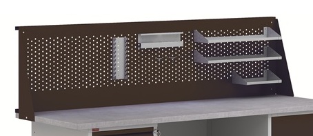Перфорированный экран Э-1 черный предназначен для установки на верстаки длиной 1000 мм (ВП-1, ВП-Э). Изготовлен из металла толщиной 1,2 мм. Экран имеет круглую перфорации диаметром 7 мм. В комплектацию экрана входят два кронштейна для крепления экрана к столешнице верстака. Дополнительно на экран можно установить второй экран Э-1В, удлиненную полку, укороченную полку, держатель инструментов, держатель ключей, крючки длиной 80 и 50 мм. Цвет: черный муар Ral 7021. Тип покрытия: порошковое.